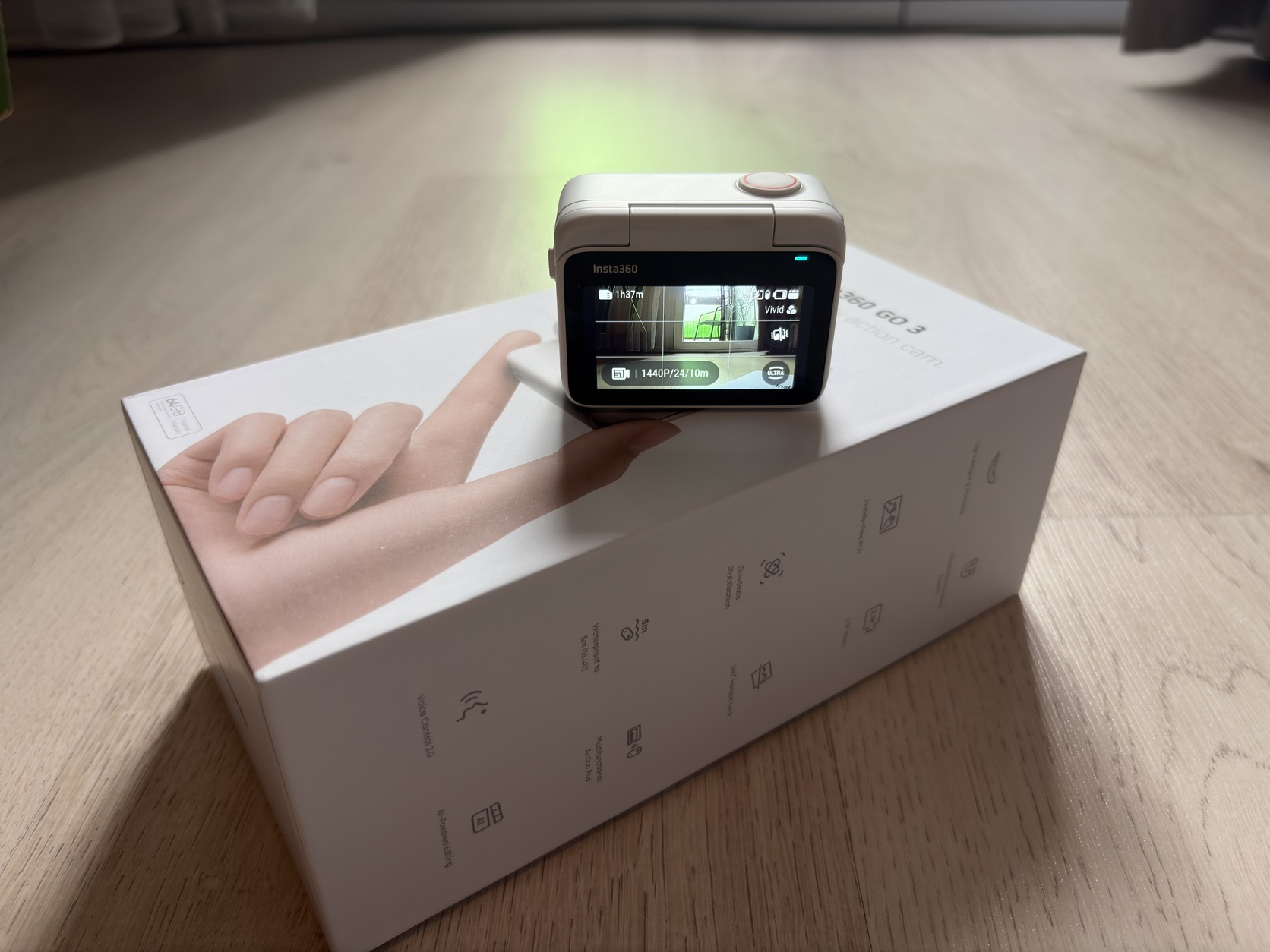 Kültéri kamera - 2,7K minőségű videók, miniatűr méretek, multifunkcionális akciótok, 170 perc üzemidő (45 perc a tok nélkül), kéz használata nélküli, FlowState, Auto Editing, IPX4 védettségi fokozat (IPX8 a tok nélkül), két beépített mikrofon, 64 GB belső tárhely, hangvezérlés.