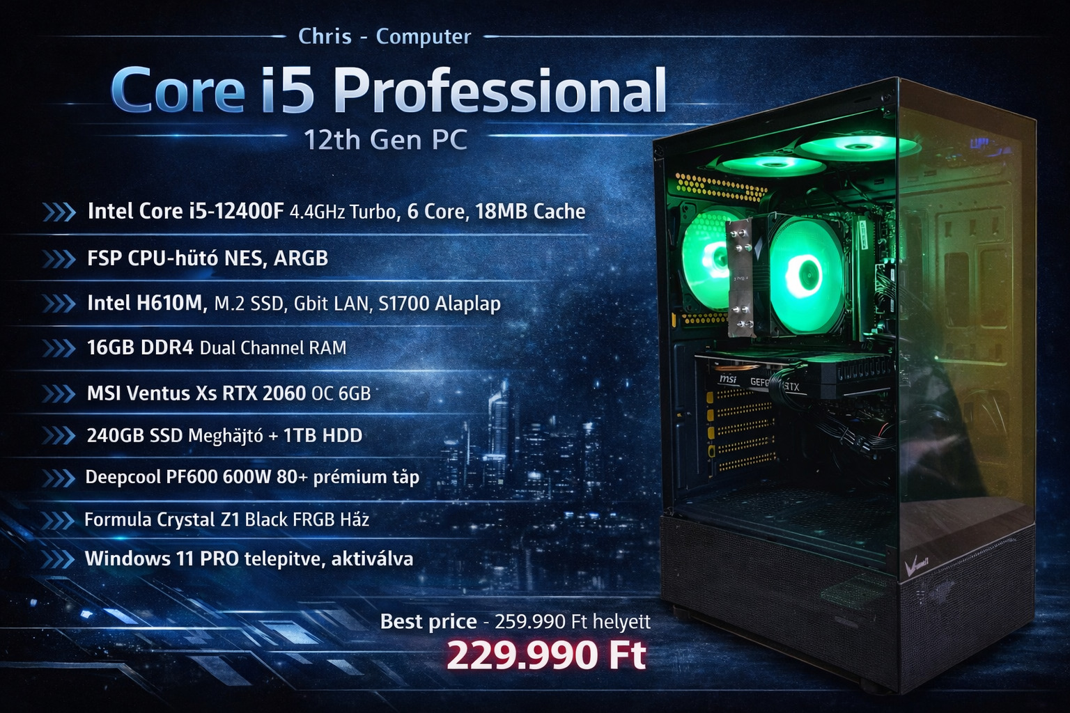Intel 12. Generációs Gamer PC (i5-12400F 16GB DDR4 RTX 2060 6GB)