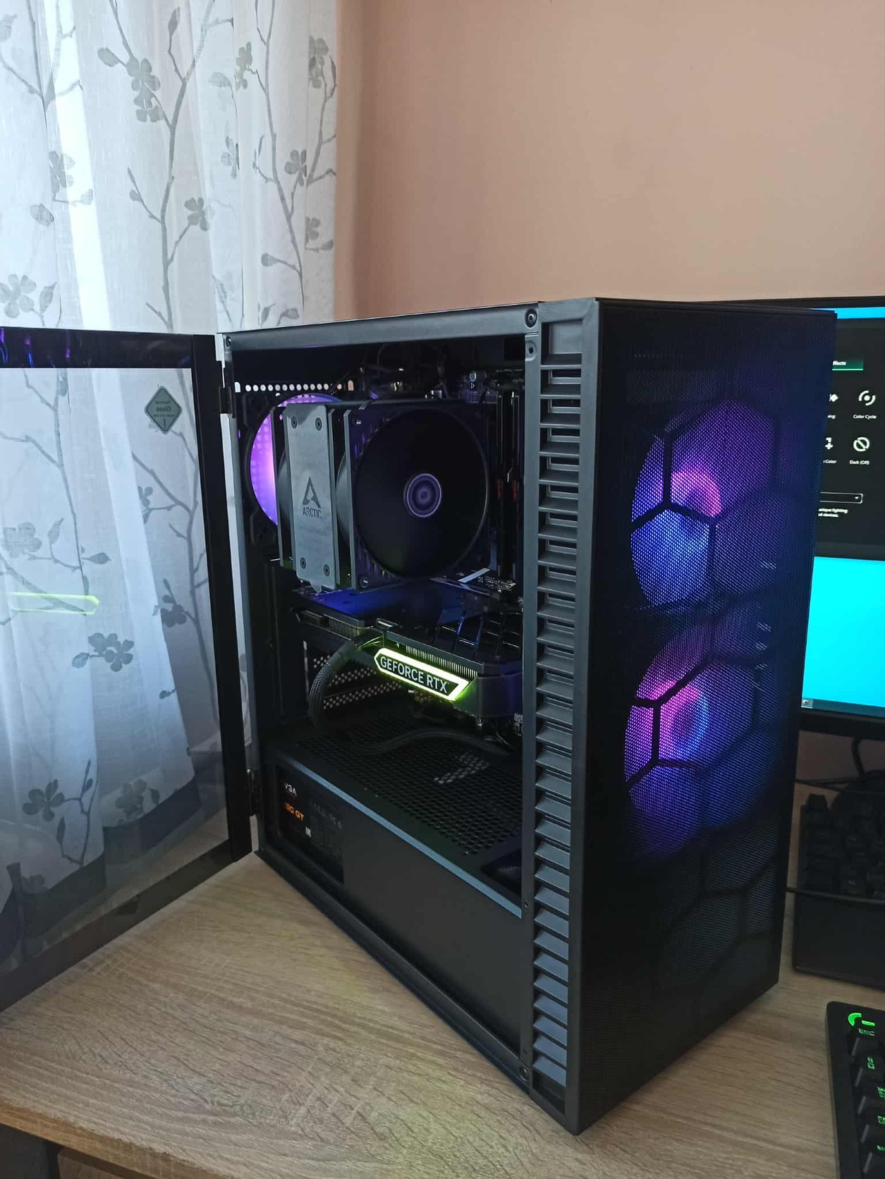 Eladásra kínálom a képeken látható, szabályozható RGB világítással, jól szellőző házba épített, meglepően csendes asztali gépet. A gondosan összeválogatott alkatrészek nagyrészt teljesen újak, és bolti garanciával rendelkeznek. Ideális választás modern játékokhoz akár 2k felbontásban, vagy munkára is.