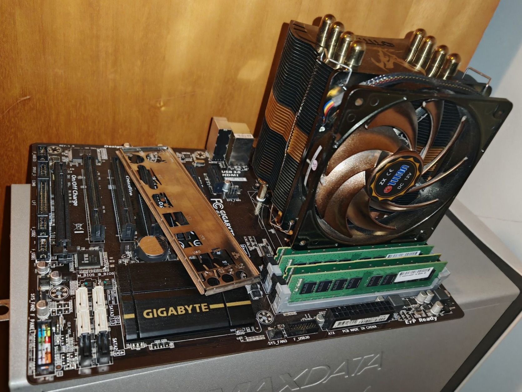 Alaplap (5k): Gigabyte GA-P85-D3 hátlap megvan, processzor (8k): Xeon 1241 V3 , memória(14k): 32GB DDR3-1600 (2x8GB Micron, 2x8GB Samsung), CPU hűtő (4k): Titan Fenrir EVO