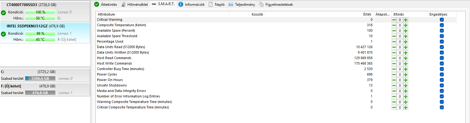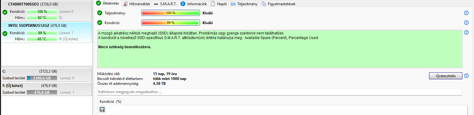 Intel 670p 512GB 2280 - 99/100 - 4,38TB írt adat, alig van benne kilóméter.