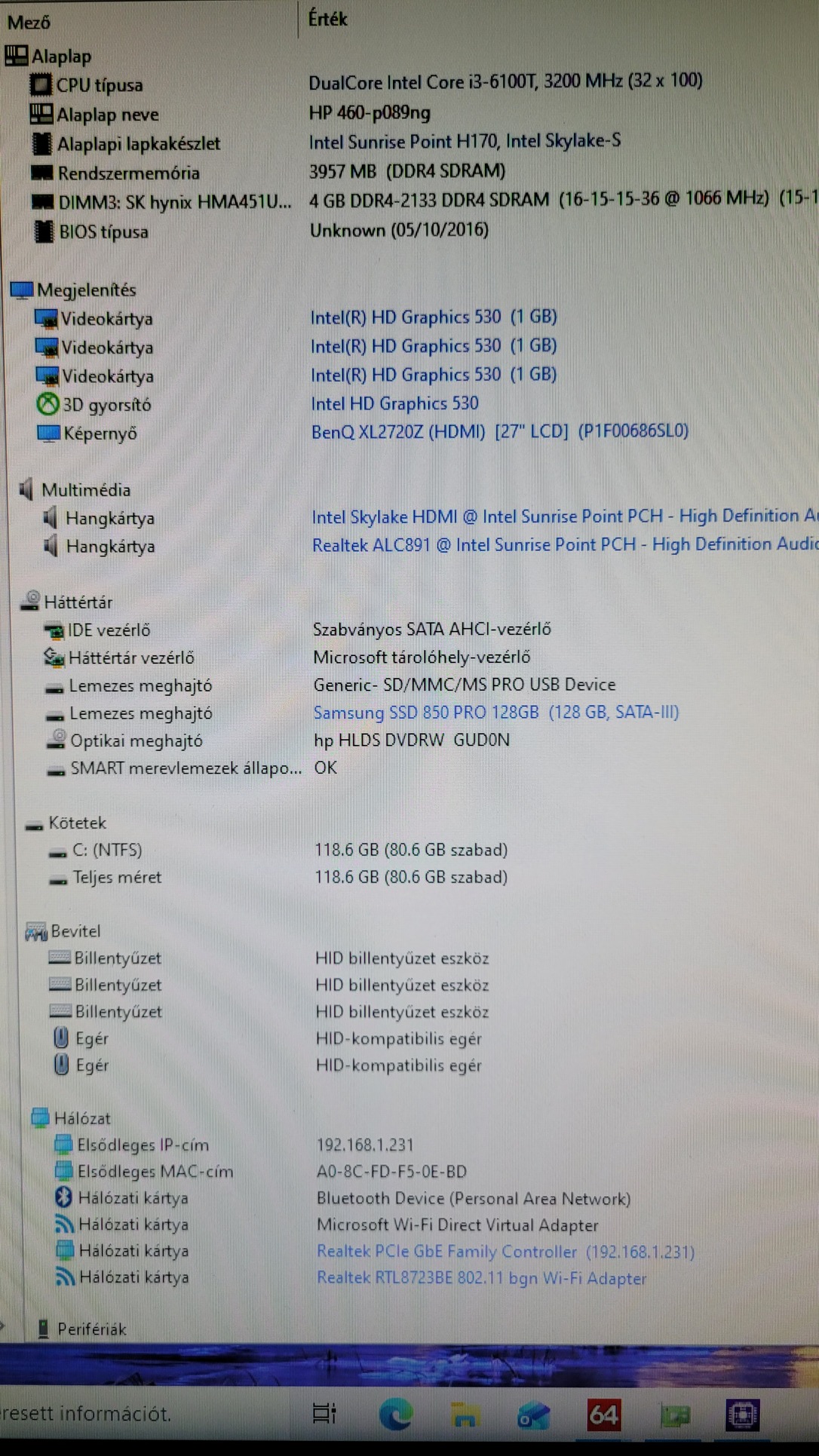 Alaplap: Intel Sunrise Point H170 (HP gyári stabilitás)