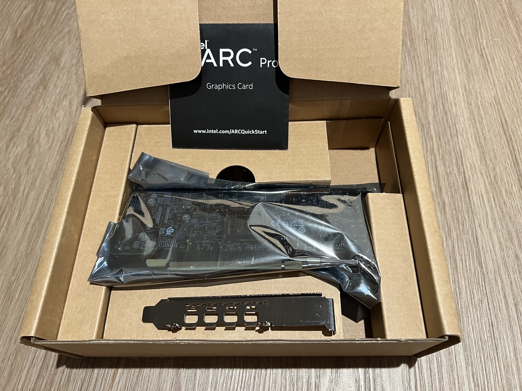Elado egy új, kibontott dobozú, Intel Arc Pro A40 GPU. A dobozban a teljes szelessegű mellett a rövid bracket is megtalálható.