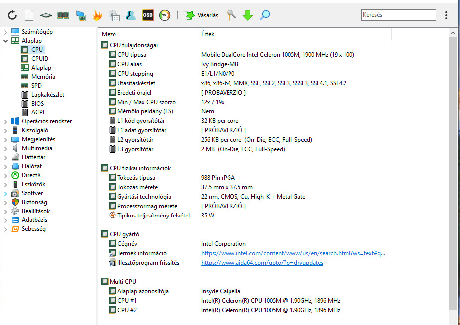 Eladó Intel Celeron 1005M 2 magos 1900 MHz processzor