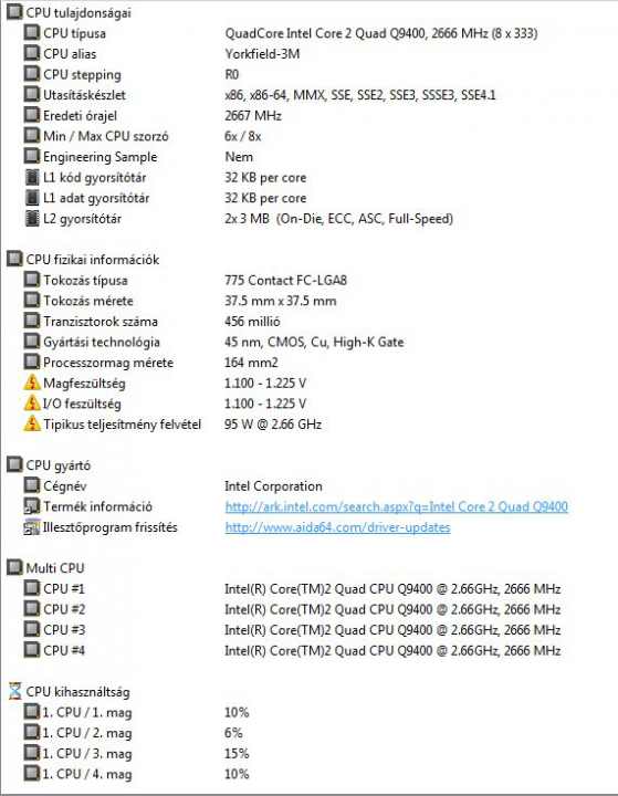 Intel Core2 Quad Q9400/2.66GHz/6M/1333MHz processzor 95W