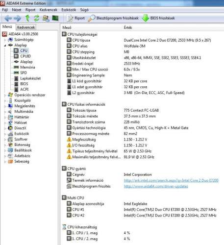 Intel Core 2 Duo E7200 CPU + Intel rézmagos cooler
