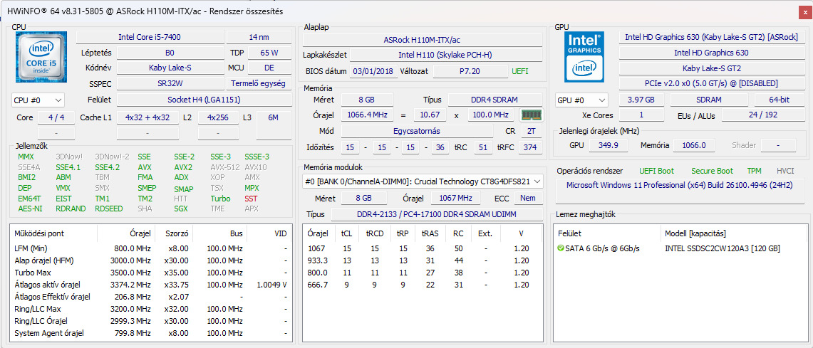 CPU: INTEL Core i5-7400 3.00GHz