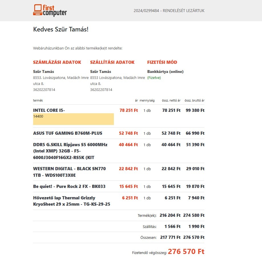 Eladó i5 14600K-ra váltás miatt. Garancia 2027.02.08-ig (Firstshop). Egy Asus B760M-PLUS alaplapban volt használva játékra jelenlegi konfigurációmmal (adatlapom). APC 600W-os UPS-el, áramszünet, spike nem érte. Mikrokód frissítve lett az alaplapon, bár ezt a modellt még nem érinti a vminshift bug, tehát semmi baja. A linken megtekinthető a CPU-Z validálása. Megerőltetve sem volt, mivel fix 75 HZ-en használtam (Rivatuner-es beállított limit). Kép a proci adatokról játék közben (Control). Integrált grafika van benne, nem az F-es modell.