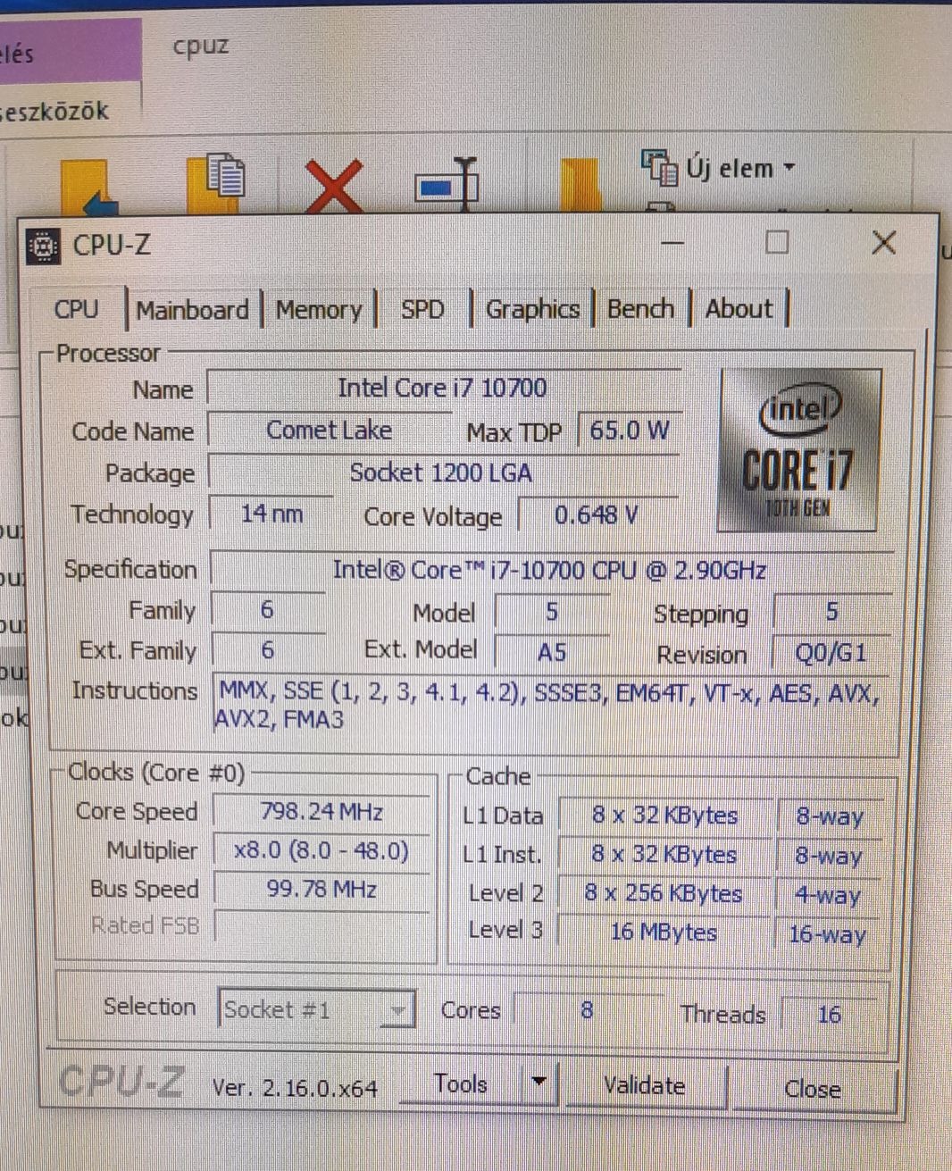– Alapórajel: 2.9 GHz, Turbo: 4.8 GHz