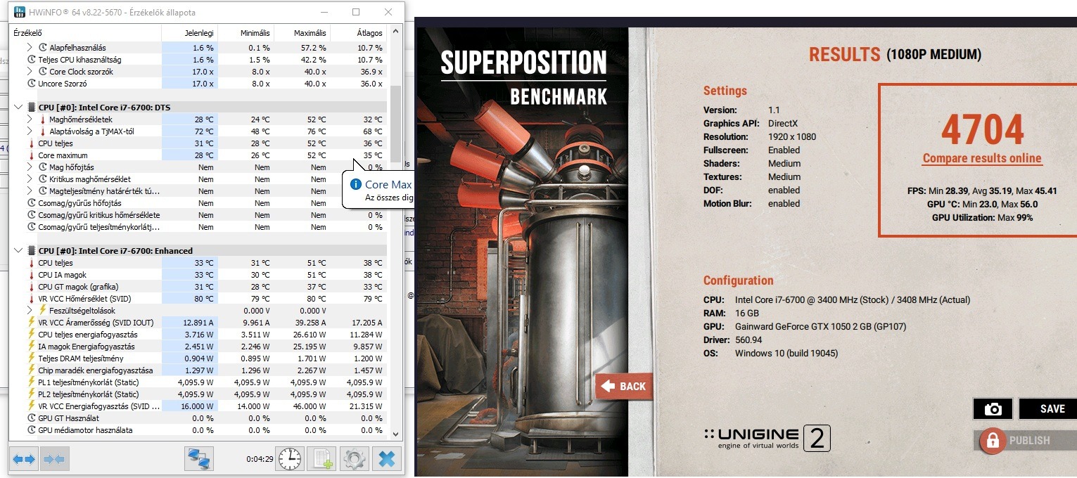 Eladó egy hibátlanul működő Intel Core I7 6700 processzor. Az utolsó képen látható hogy Superposition benchmark alatt hány fokra melegedett fel.