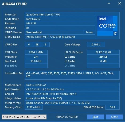 Tökéletesen működő Intel I7 7700 processzor.