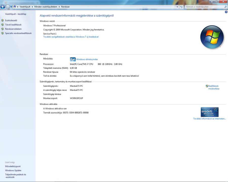 CPU: Intel core i7-860 2,8Ghz 4mag 8 szálon