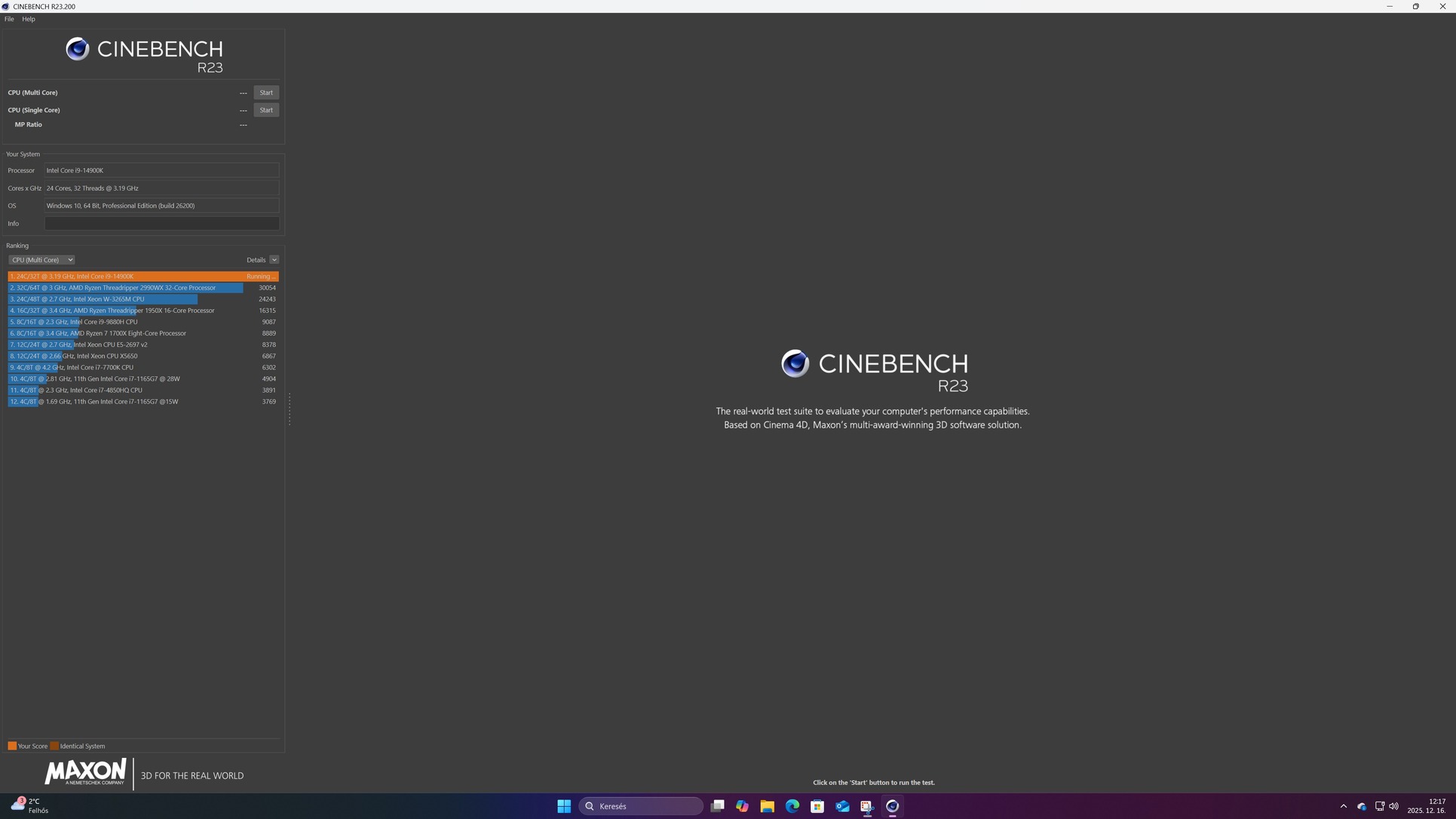 Tesztek a képek között, 10 perces Cinebench R23 Multicore.
