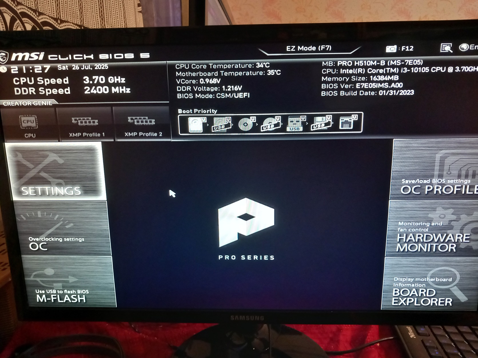 Intel Core i3 10105 processzor, gyári hűtővel + MSI PRO H510M-B alaplap