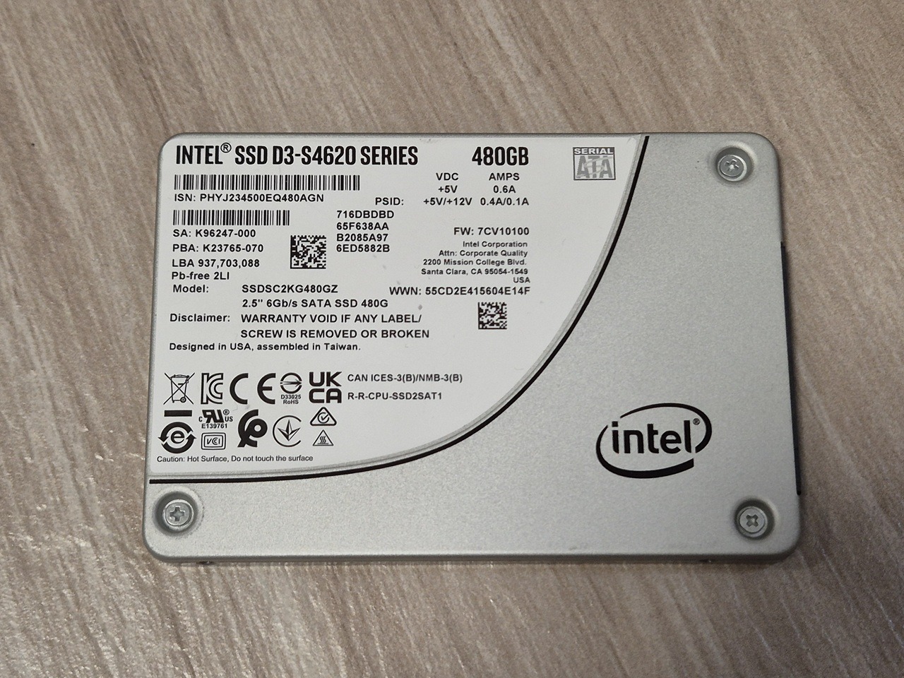 Intel D3-S4620 480GB szerver SSD