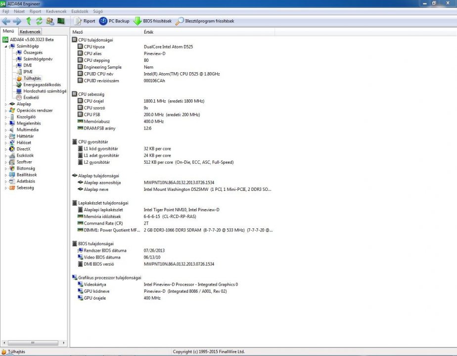 - Atom D525 processzor (2mag/4szál, 1,8GHz, 13Watt), passzív hűtés
