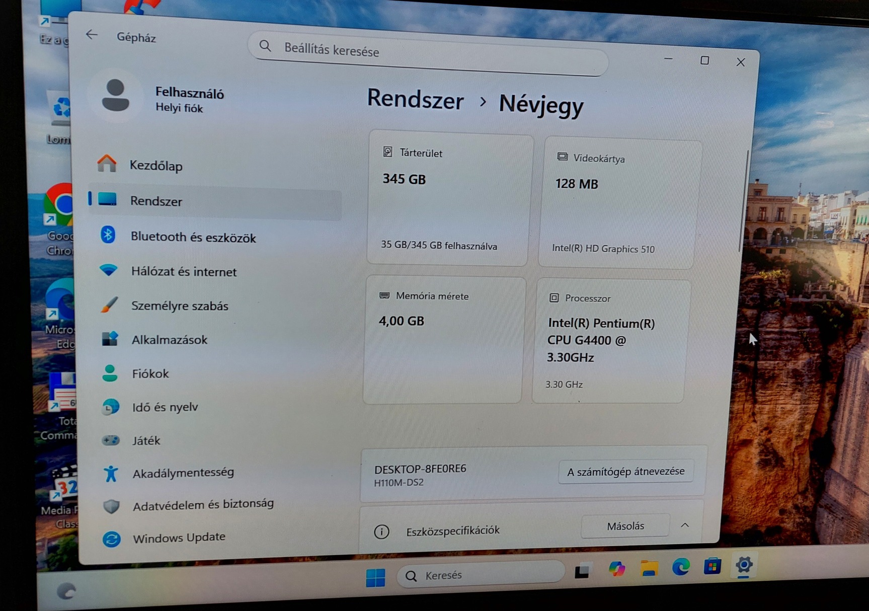 Intel G4400 számítógép, Windows 11