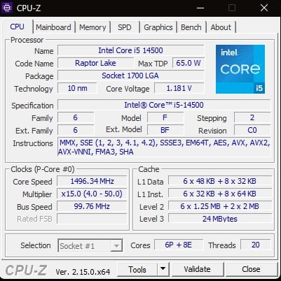 -Processzor: intel core i5 14500
