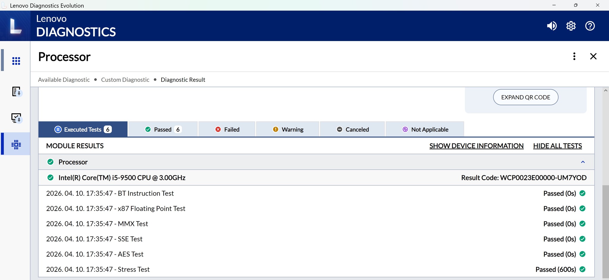 Intel i5 9500 CPU, processzor