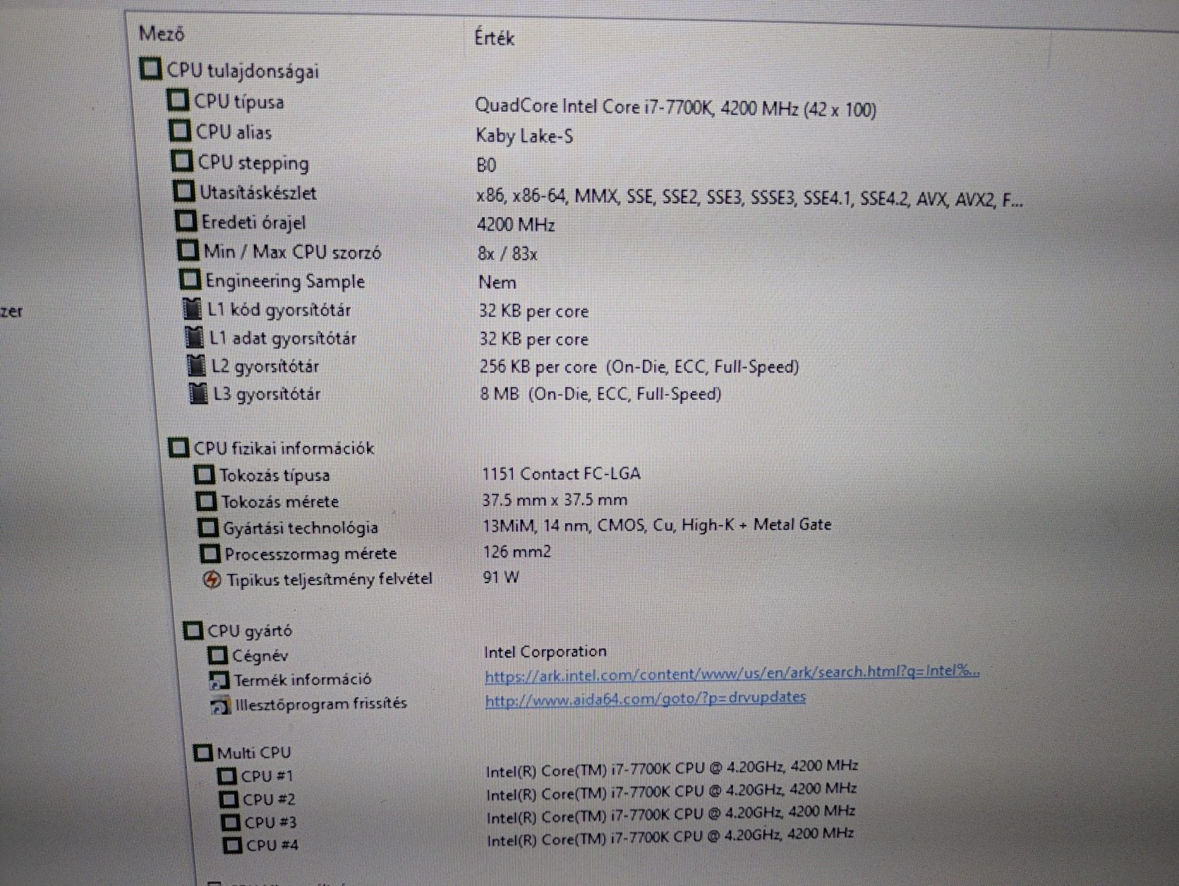 Intel i7-7700K CPU (processzor) eladó!