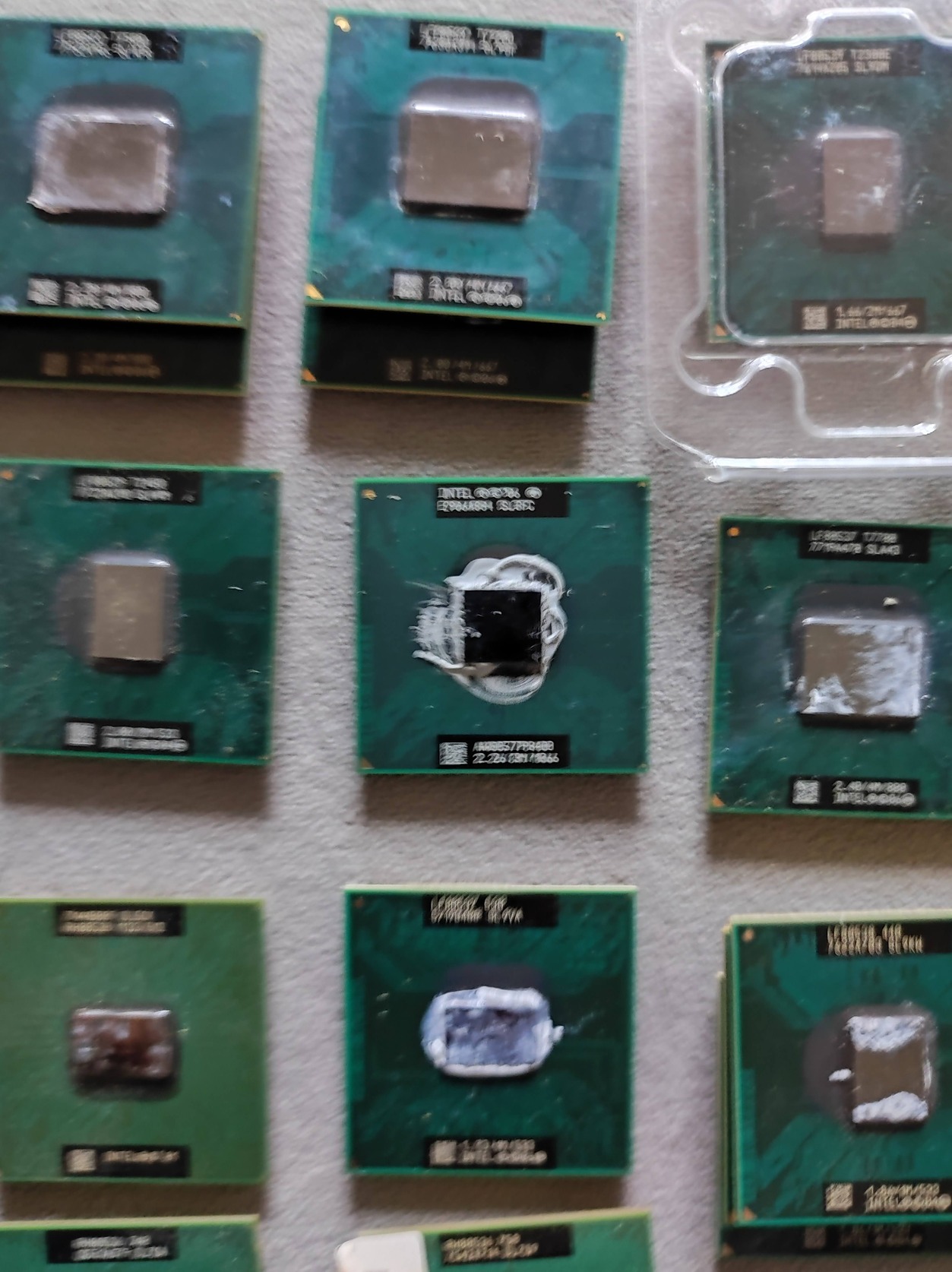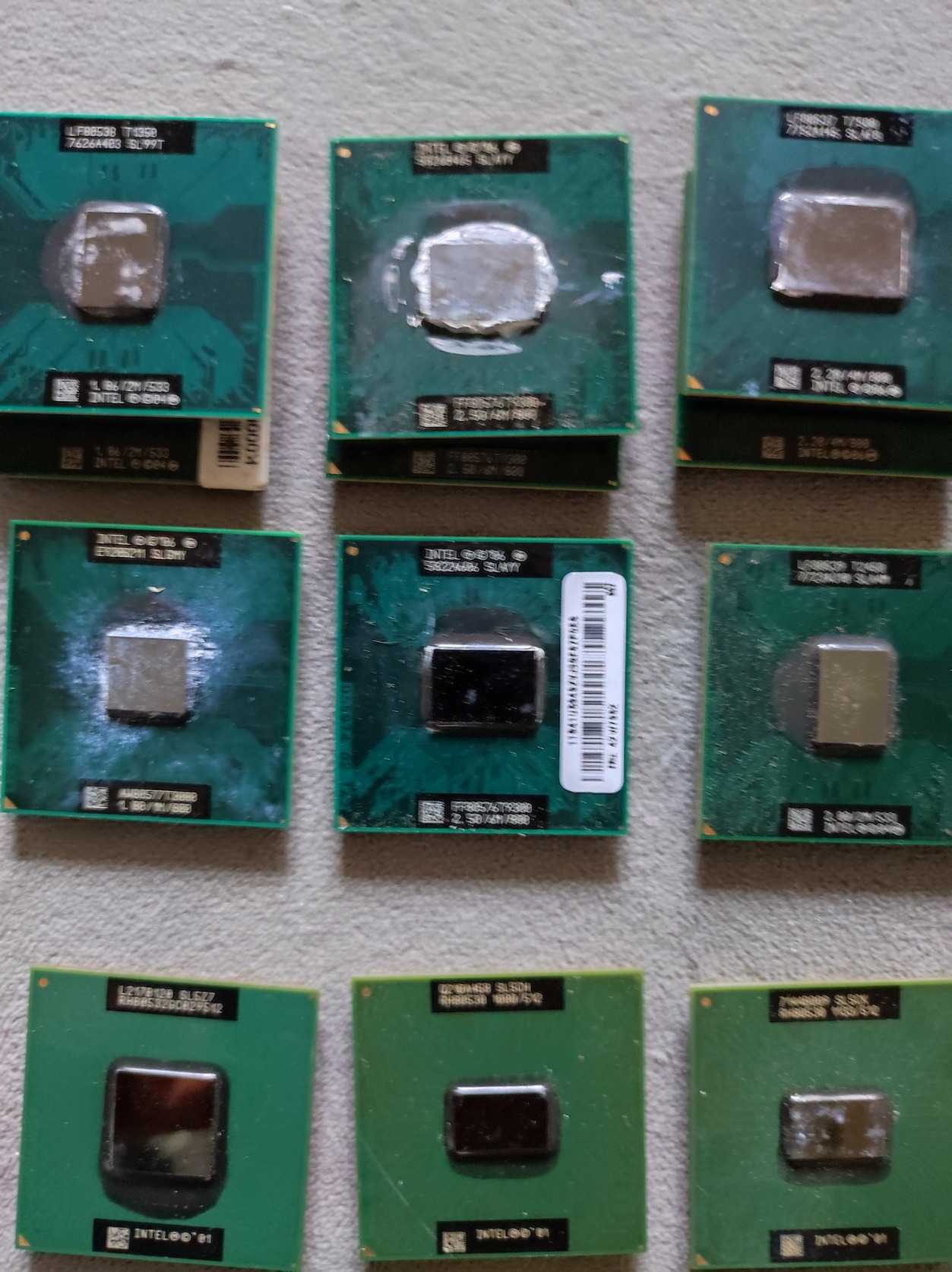 T2300, T7200 – 2 db, T7500 – 2 db, T9300 – 3 db, T1350 – 2 db, T3000, T2450, P8400, T770, 440 – 3 db, 530, SL5CK, SL5CH, SL5Z7, SL6CJ, 760 – 2 DB, 750 – 2 DB, SL6QH, SL75J, SL6VB, SL6FH, XEON 4327A459, P4 SL6WK.