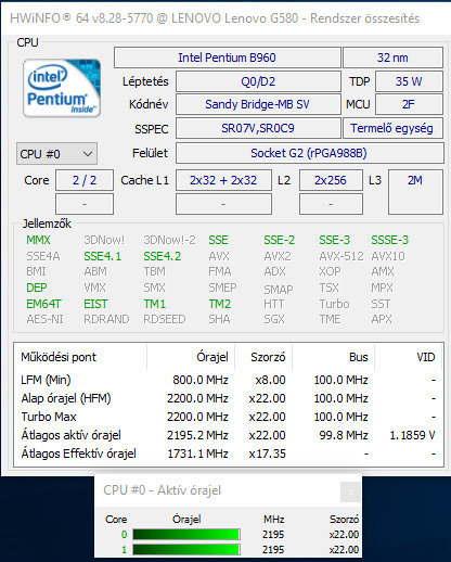 Intel Pentium B960 (2,2GHz, 2MB, 35W) - 2. és 3. generációs laptopokhoz - csomagküldés 1070 Ft-tól