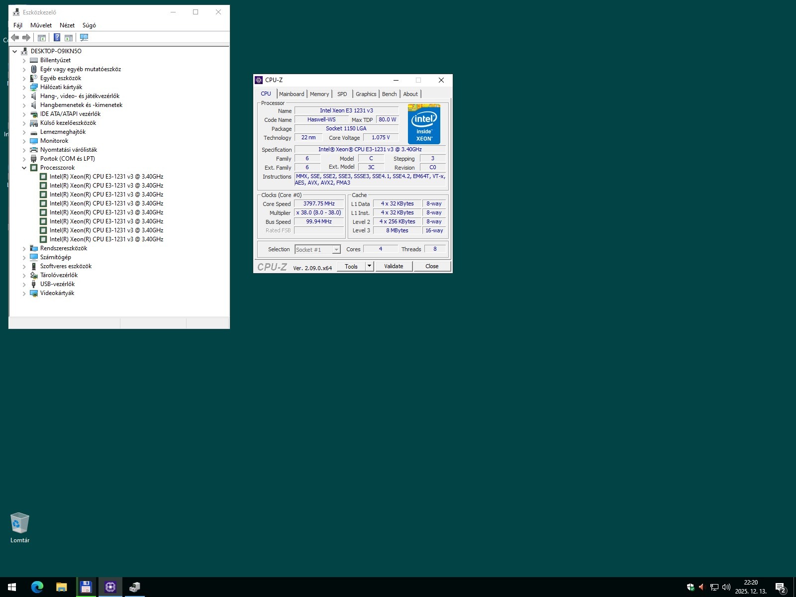 Intel Xeon E3-1231 v3 (kb. i7-4770) processzor