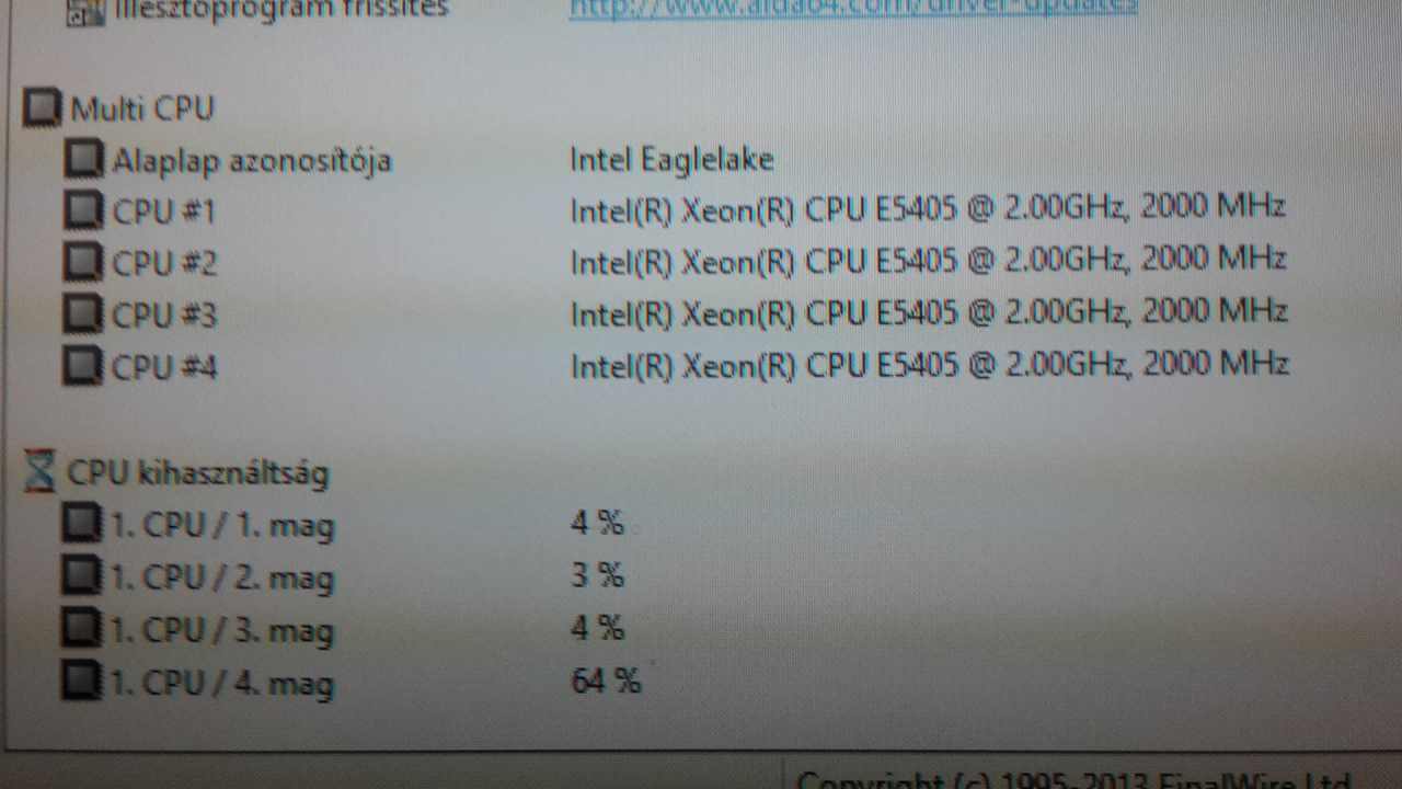 Processzor órajel 2000 Mhz