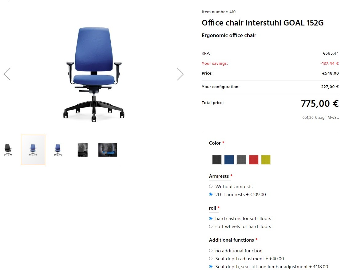 Az Interstuhl egy széles körben ismert felső kategóriás német márka. Nemcsak nagyon kényelmes, de a rengeteg állítási lehetőség miatt megállja a helyét a Steelcase és a Herman Miller székekkel szemben is.