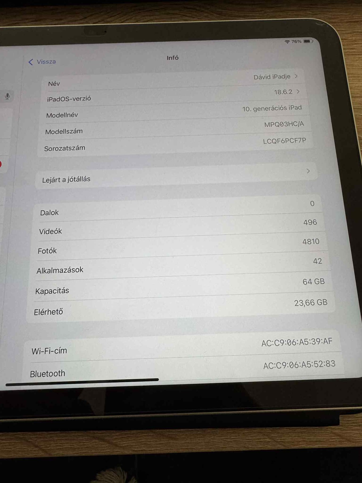 Eladó egy 10 Generációs Ipad Wifis 64 gb tabletem. 2026.02.17-ig Garanciális még.