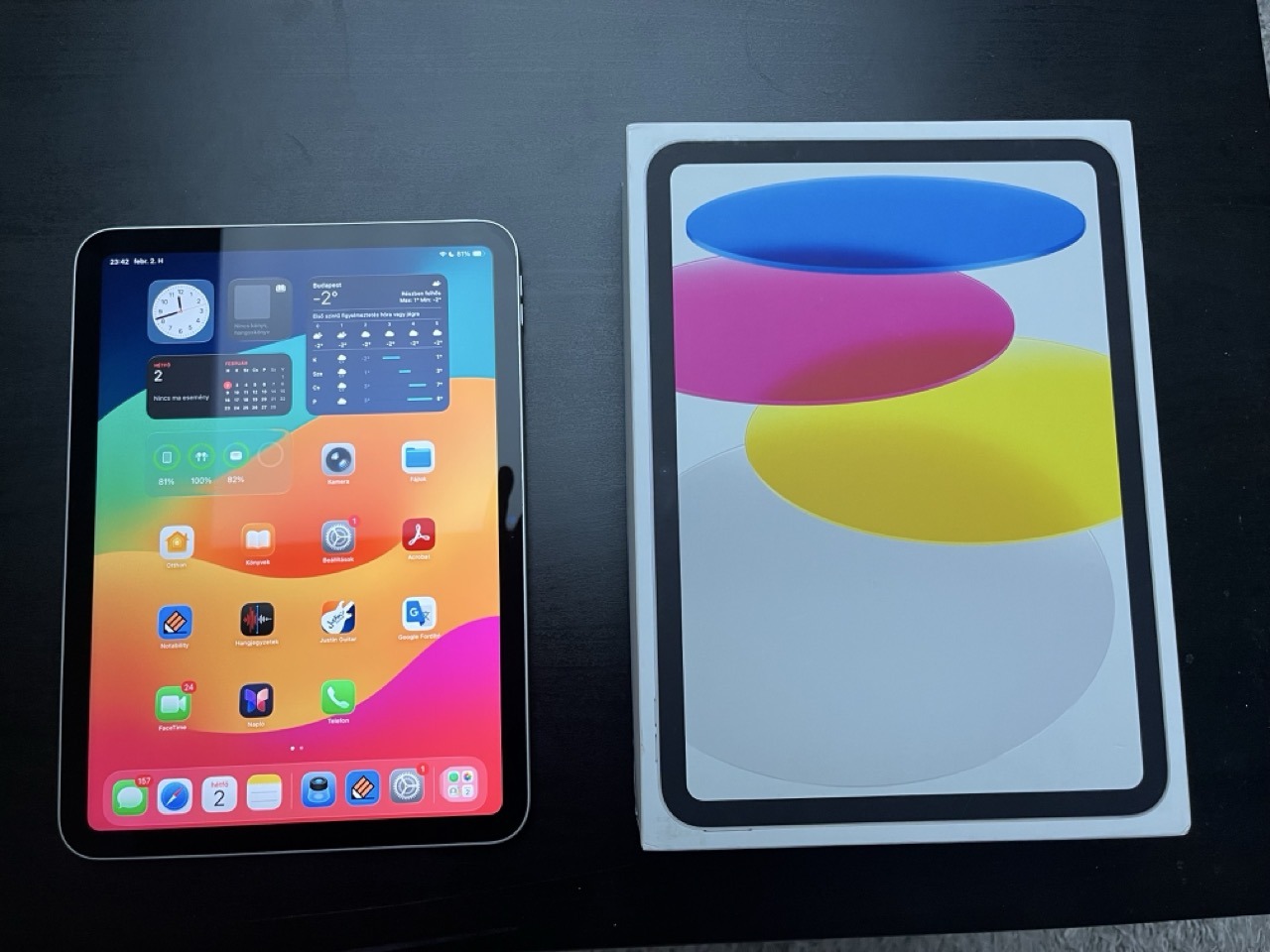 iPad 10 Wifi 64GB Silver karcmentes, tokban tartott, MediaMarkt jótállással, ami 2026.április 18-ig érvényes. Dobozával, eredeti usb-c töltőkábelével, amit soha nem használtam. Fekete tokja is vele költözik ajándékba. Személyes átvétel Budapesten Zuglóban vagy Mom Park környékén, postázni nem szeretném.