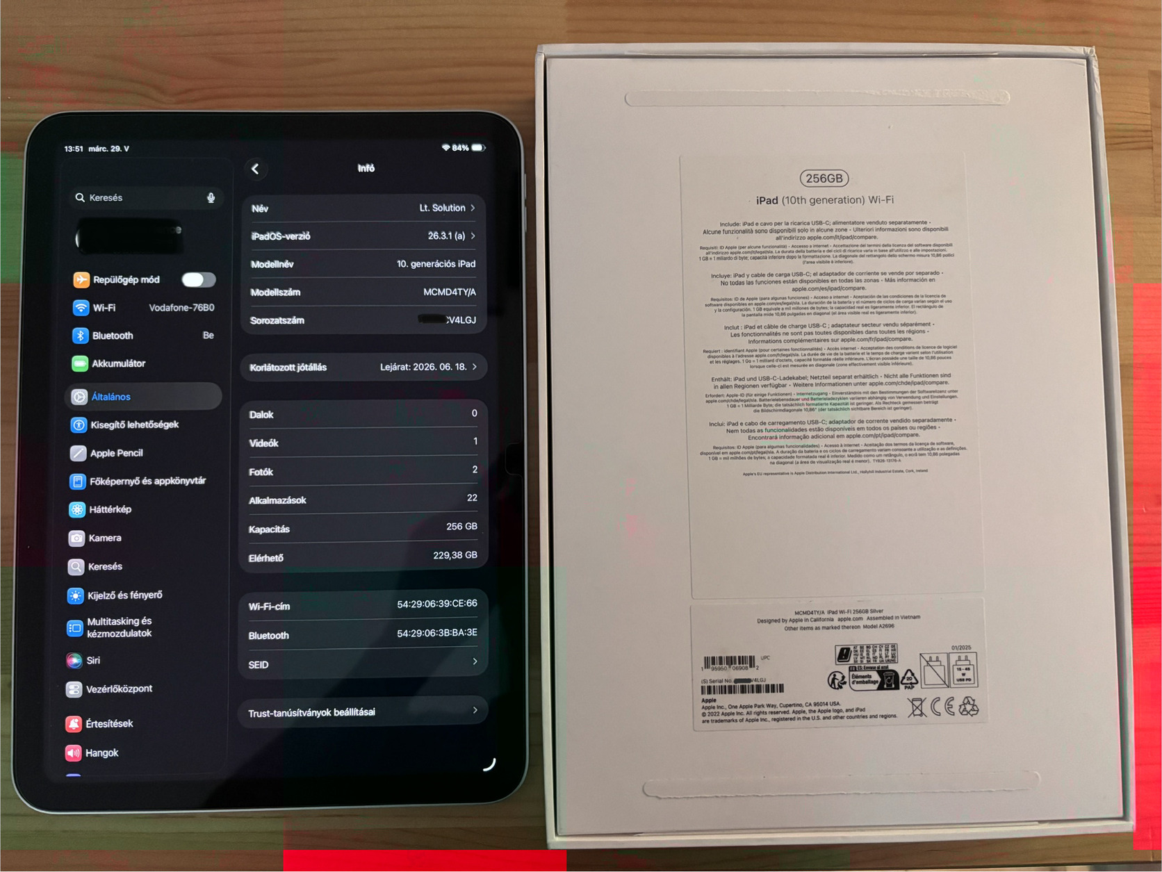 Szép állapotban lévő 10. generációs Apple iPad tablet tokkal (vonóval.. bocsi) eladó.