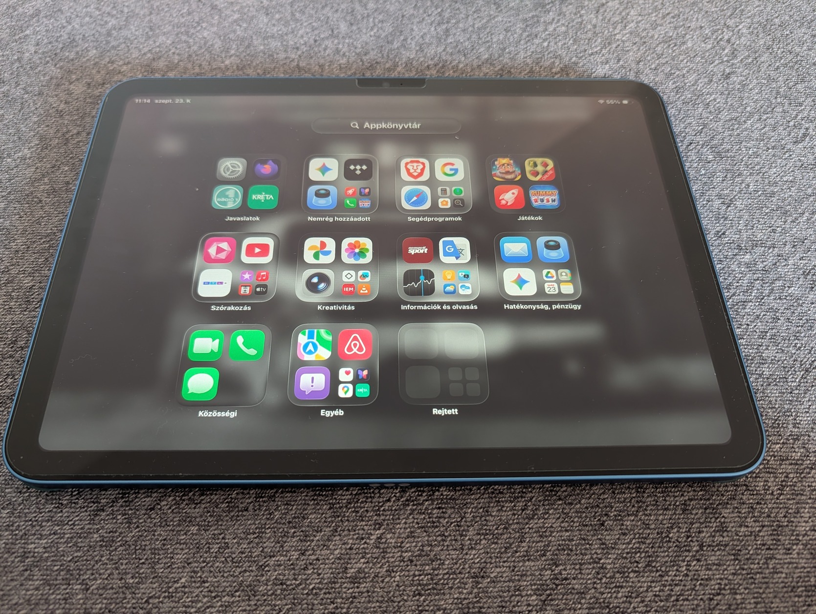 Eladó lehet a képeken látható 2 hónapos makulátlan állapotú iPad! 128 gb-os kék Wifi modell. Alza vásárlás, hivatalos 2 év garival! A kijelzőn üvegfólia kezdetek óta plusz ajándékba adom a képen látható tokot mellé! Dobozában tartozékával! Helyileg Kispest környékén átvehető, de mobilis is tudok lenni. Nem mindenáron eladó, ésszerű keretek között kis alku beleférhet!
