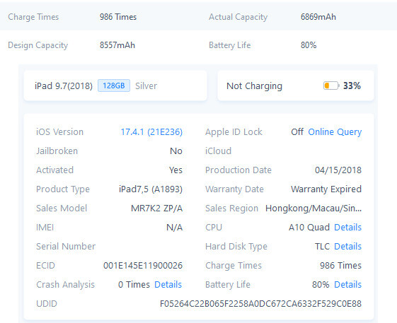 Az iPad karcmentes, akkumlátor kapacitása 80%, 986 töltési ciklussal és iOS 17.4.1 fut rajta. A dobozát sajnos nem találtam. Az iPadhez tartozék nem jár (töltő, kábel). Ha bármi kérdésed akadna, nyugodtan keress meg privát üzenetben.