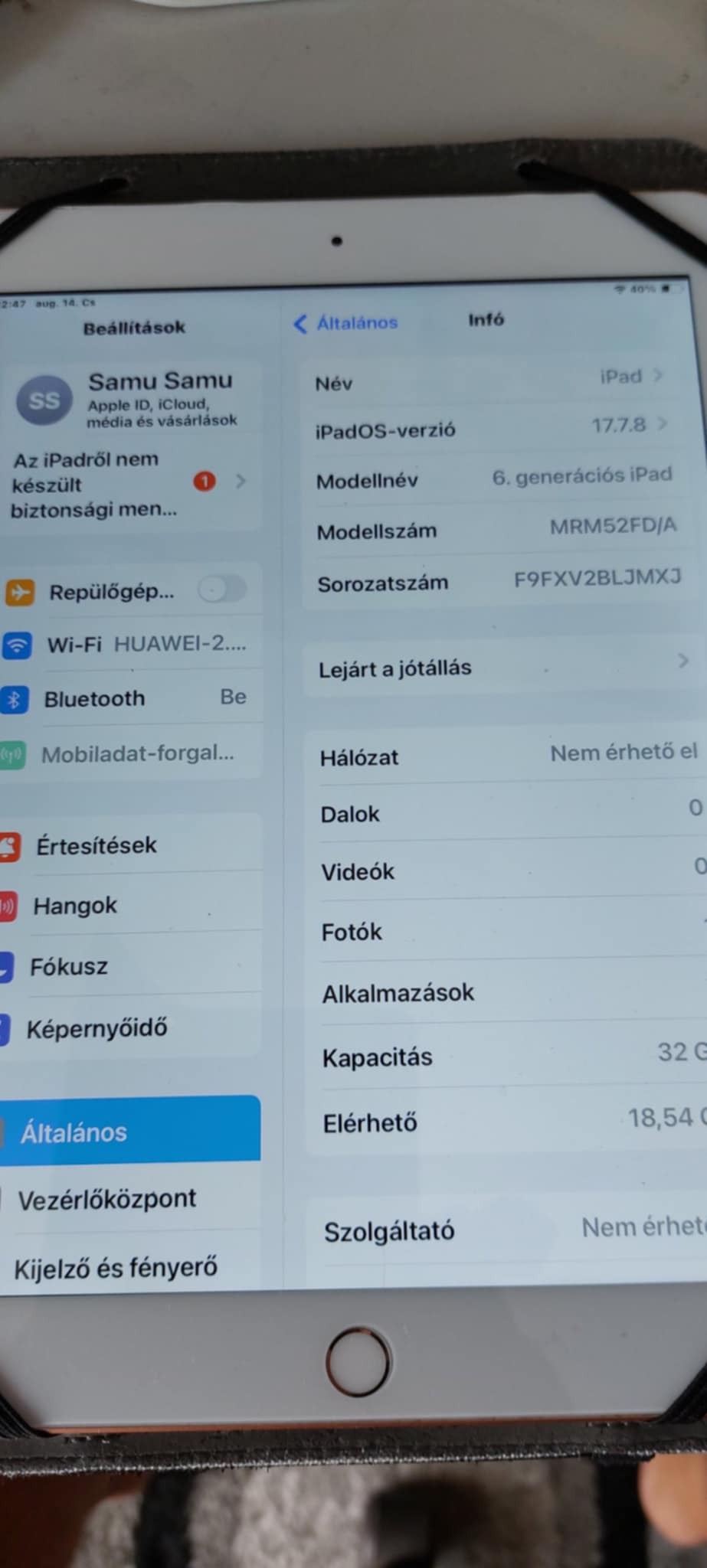 IPAD 6 Wifi+Cellular 32GB 7 órás akkú !!!
