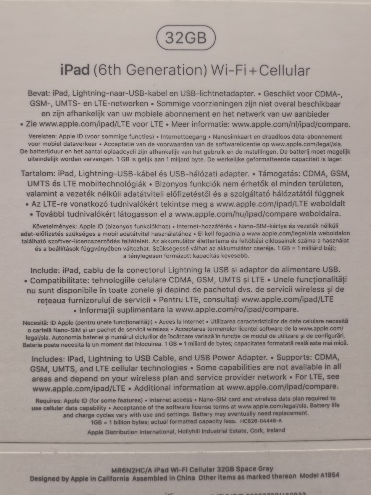 iPad 6th Gen 32 GB - WiFi + Cellular