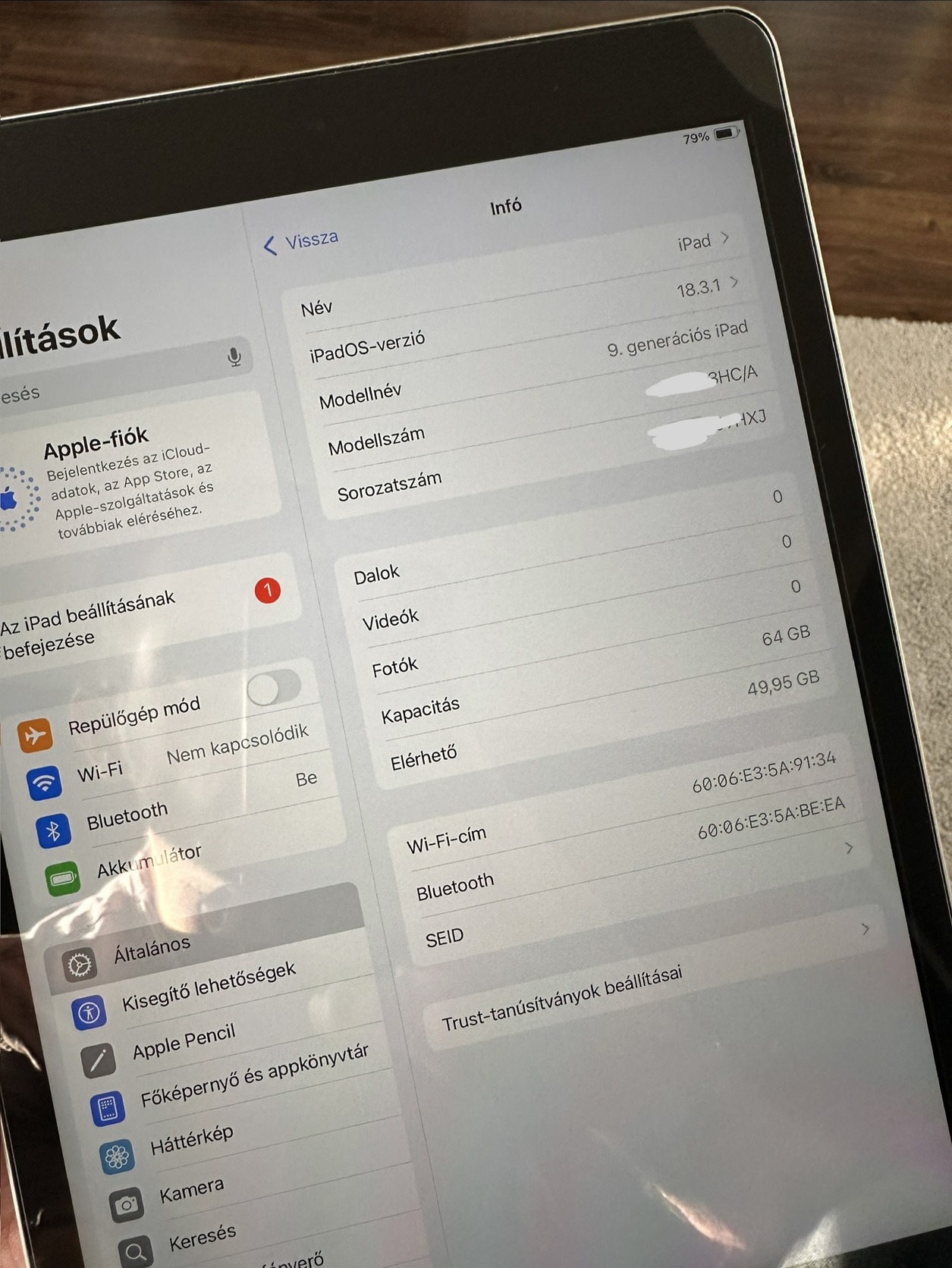 Eladó egy tökéletes állapotú iPad 9. Generációs készülék. Sima wifis, 64 gigás.