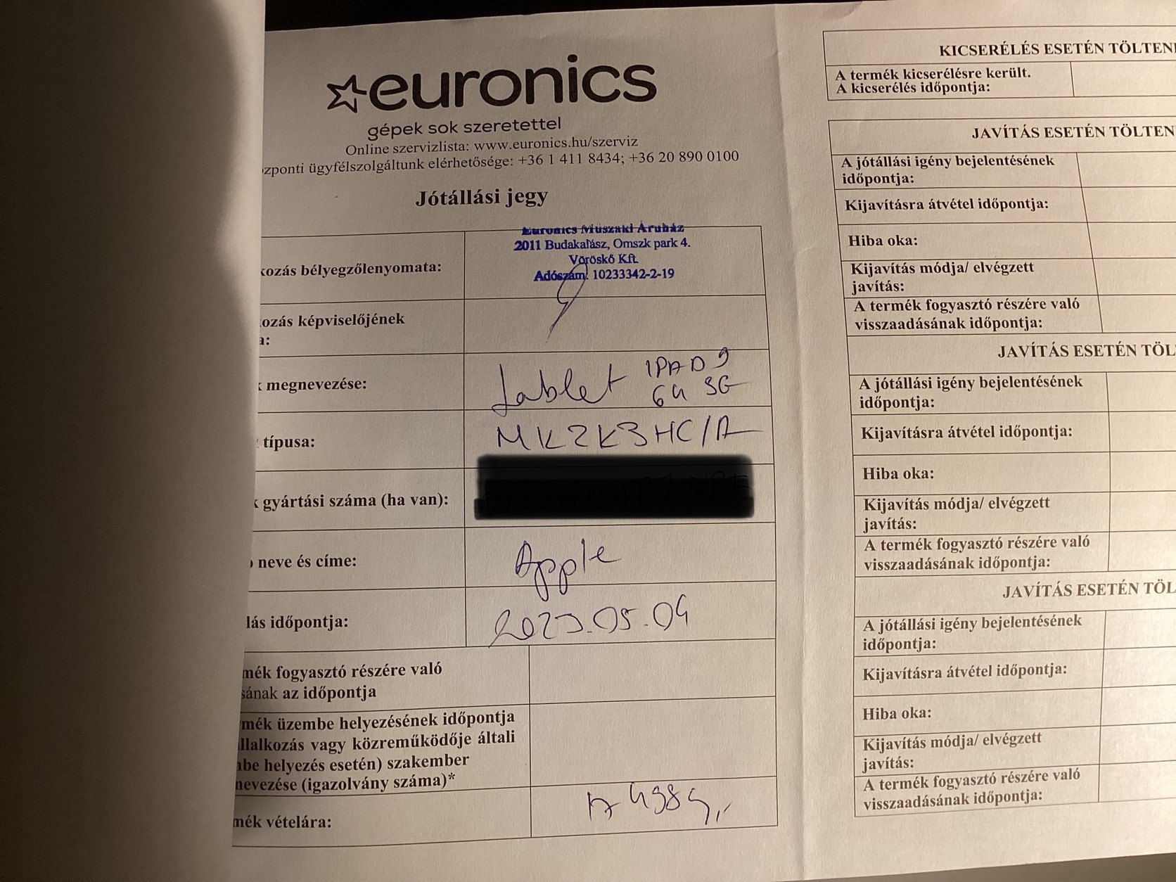 Euronics vásárlás 2023.05.04