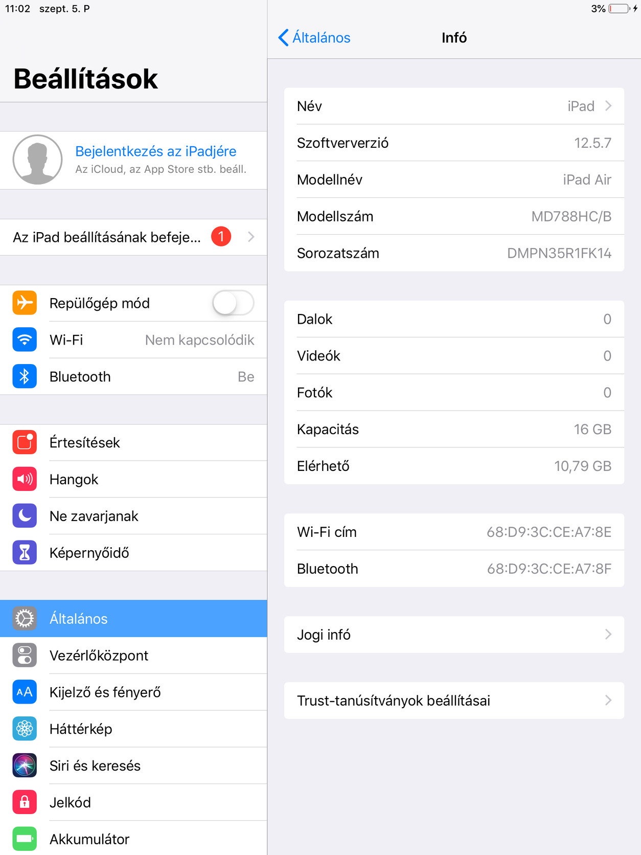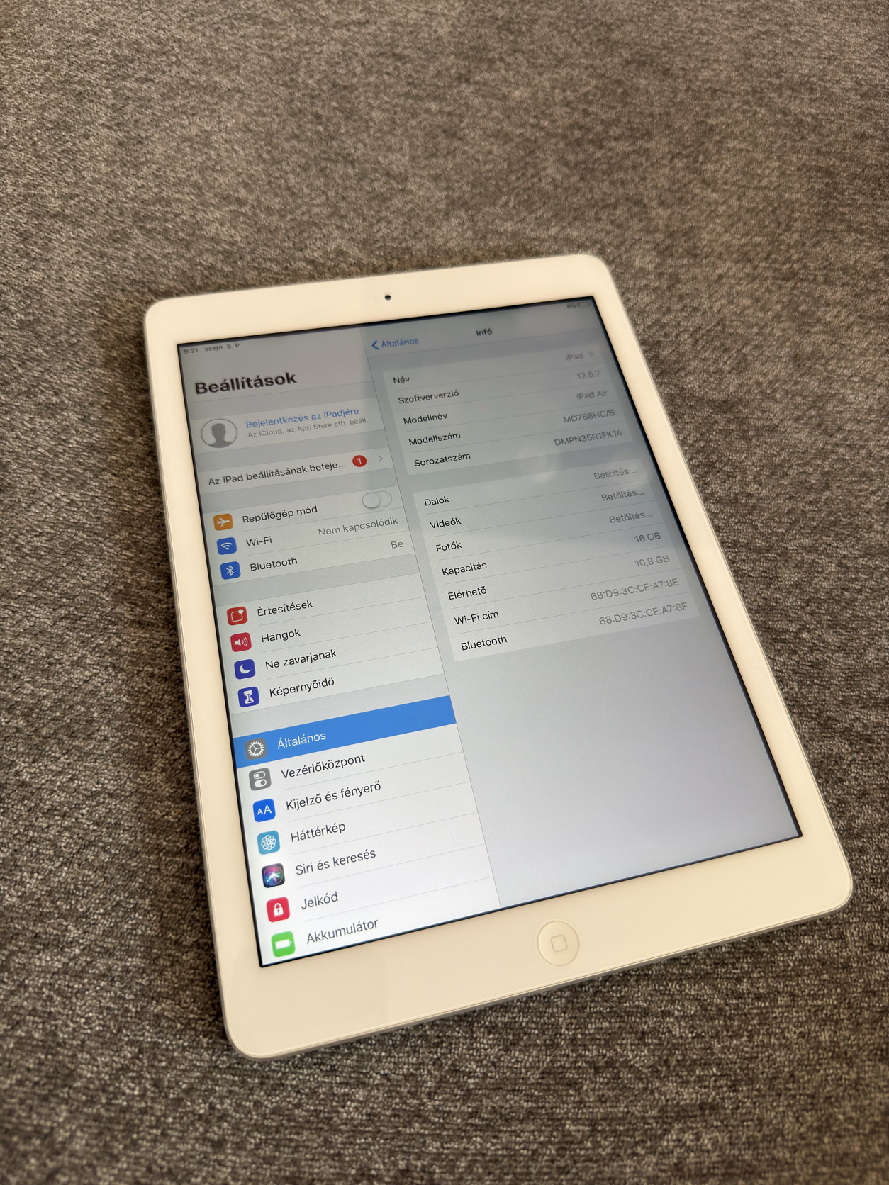 Eladó iPad Air (2014, 1. generáció – modell iPad4,1)