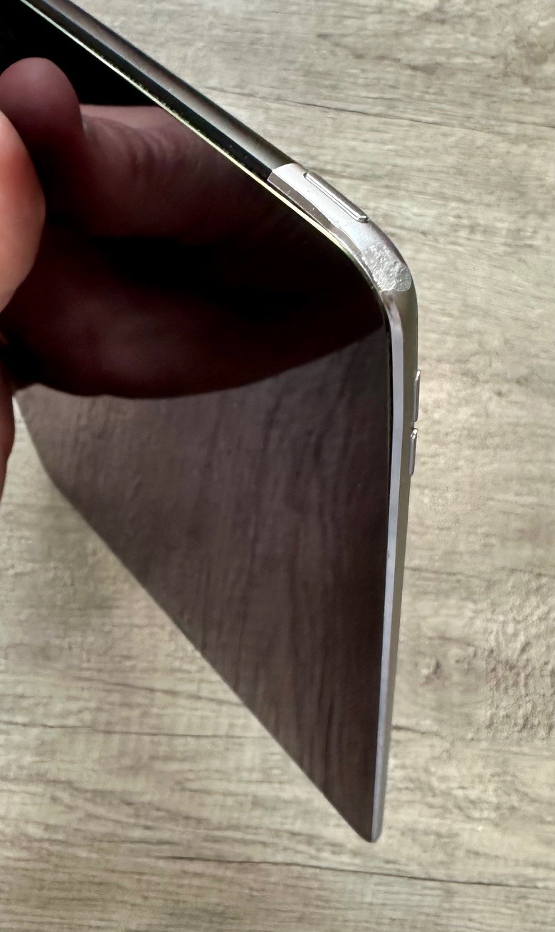 A jobb felső sarkán van egy ütődés nyom, de semmi komoly továbbá itt-ott normál használatból eredő hajszálkarcok előfordulnak.