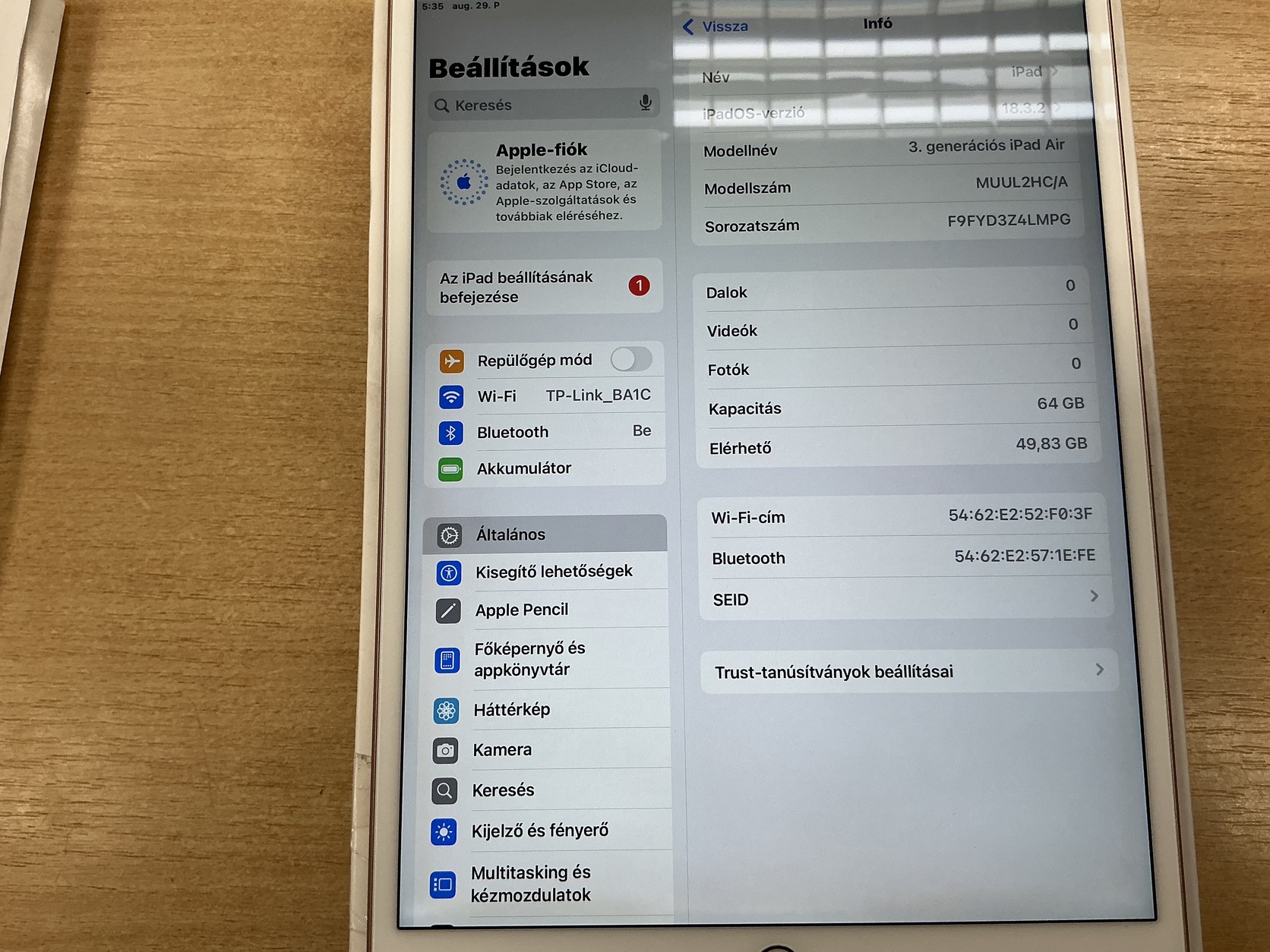 Eladó iPad Air 3 64GB Wi-fi Rose Gold szép állapotban.