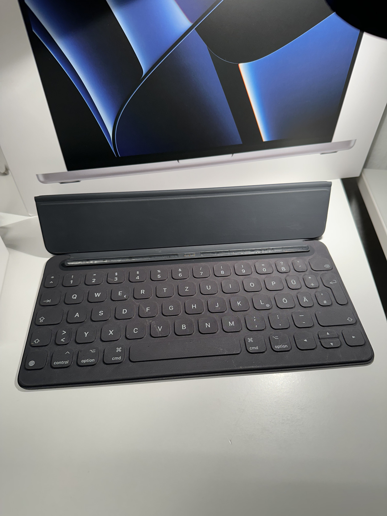 Eladó egy használt, tökéletesen működő Apple Smart Keyboard német kiosztással, fekete színben.