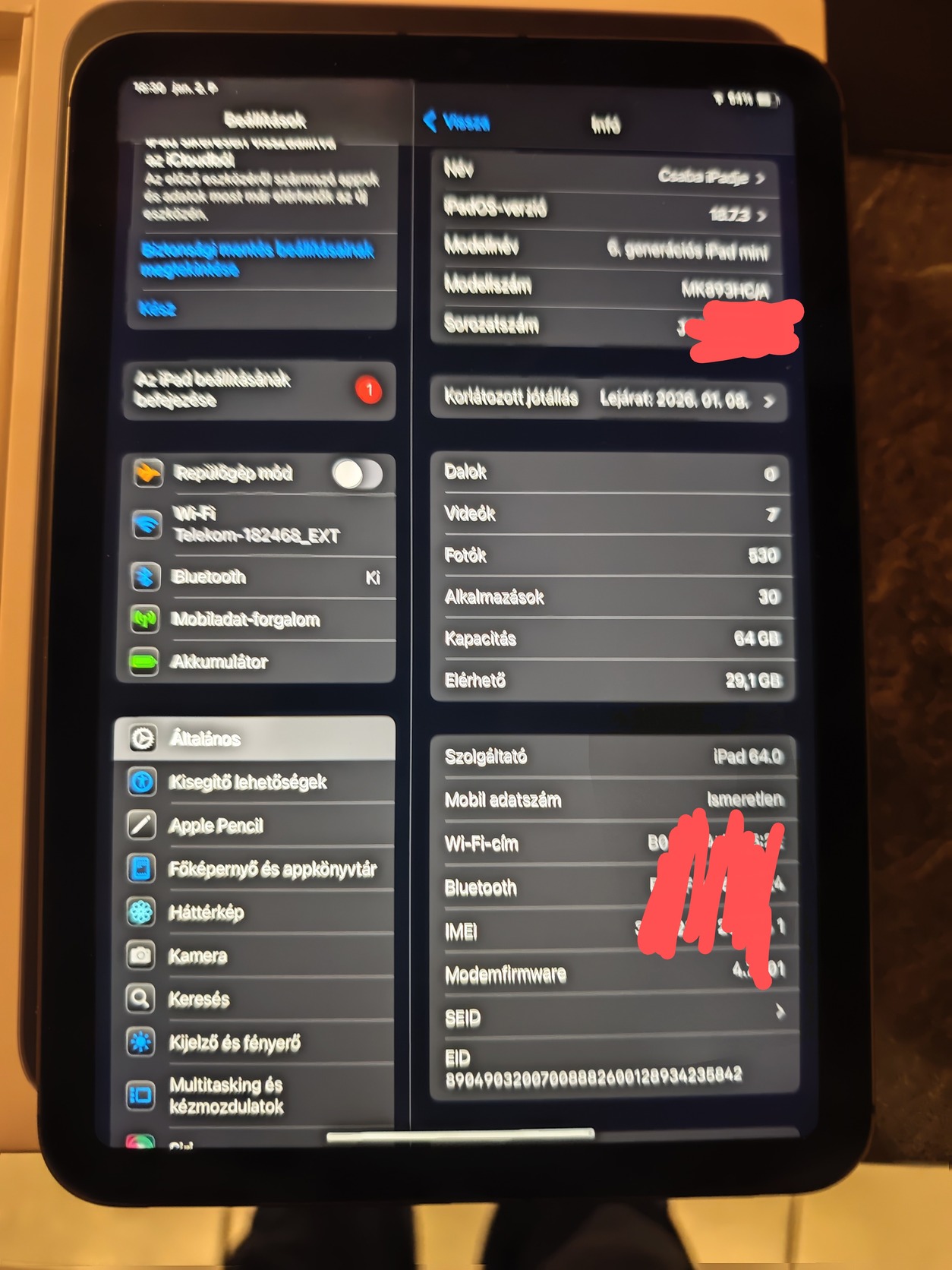 Eladó egy asztro szürke, 64GB, iPad Mini 6.