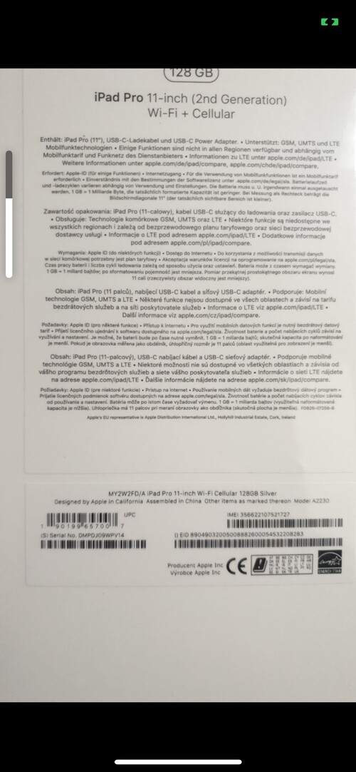 Eladó egy bontatlan iPad Pro 11" 128 GB Wifi+ Cellular / Silver készülék. Egy év gyári apple garanciával.