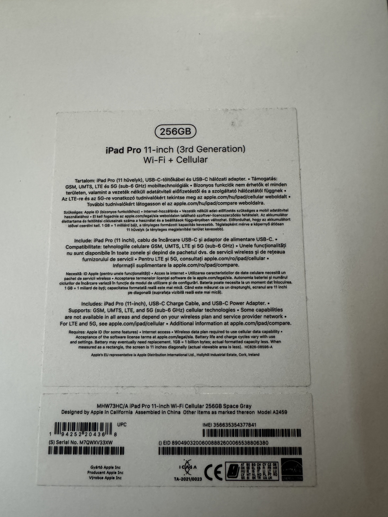 - iPad Pro 11" (3. generációs), 2021, Apple M1 chip, 256GB tárhely, WiFi + Cellular, 96% akku (180 ciklus)