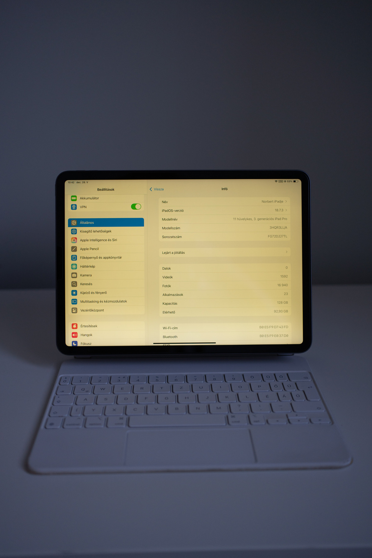 Eladó egy teljesen karcmentes, harmadik generációs, 11 hüvelykes iPad Pro, valamint egy magyar nyelvű, jó állapotú Apple Magic Keyboard.