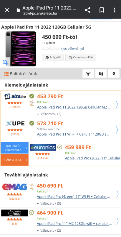 Én is, illetve Te is, mint leendő vásárló tisztában vagy a legolcsóbb hivatalos bolti eladási árával (450 ezer Ft), így azt gondolom, hogy a hirdetésem bőven korrekt.