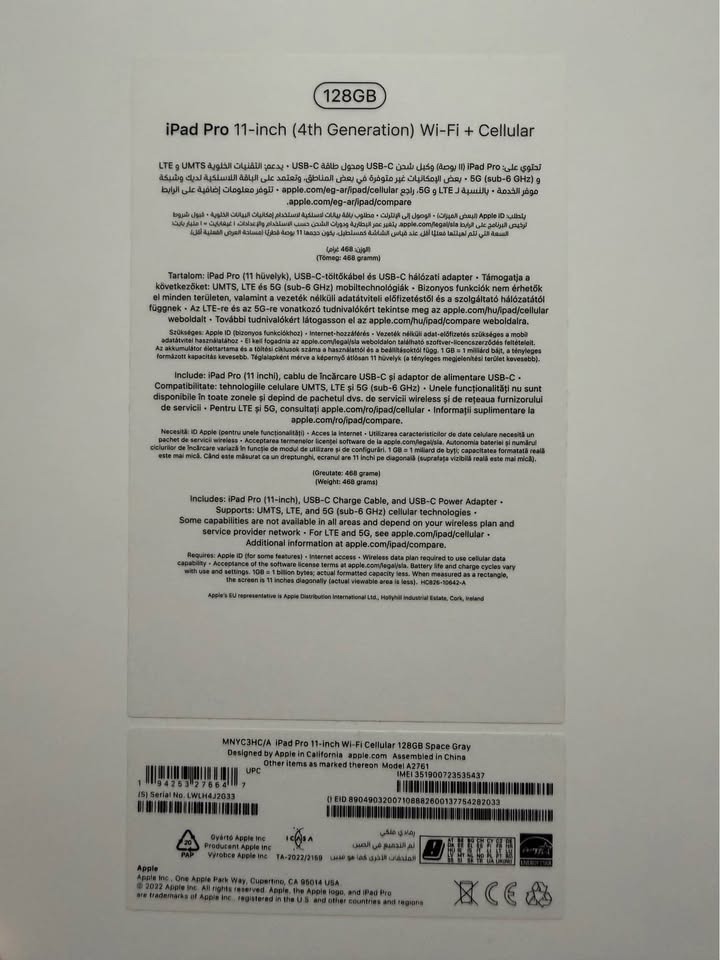 iPad PRO 128Gb M2 (4th Generation) Wi-Fi + Cellular eladó