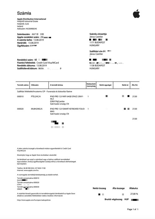 A termékeket az Apple-től rendeltem, lásd a számlát a képek között, a hátlapon található egy jCzettler glavírozás, ami akkor vagánynak tűnt, ellenben alig látható.
