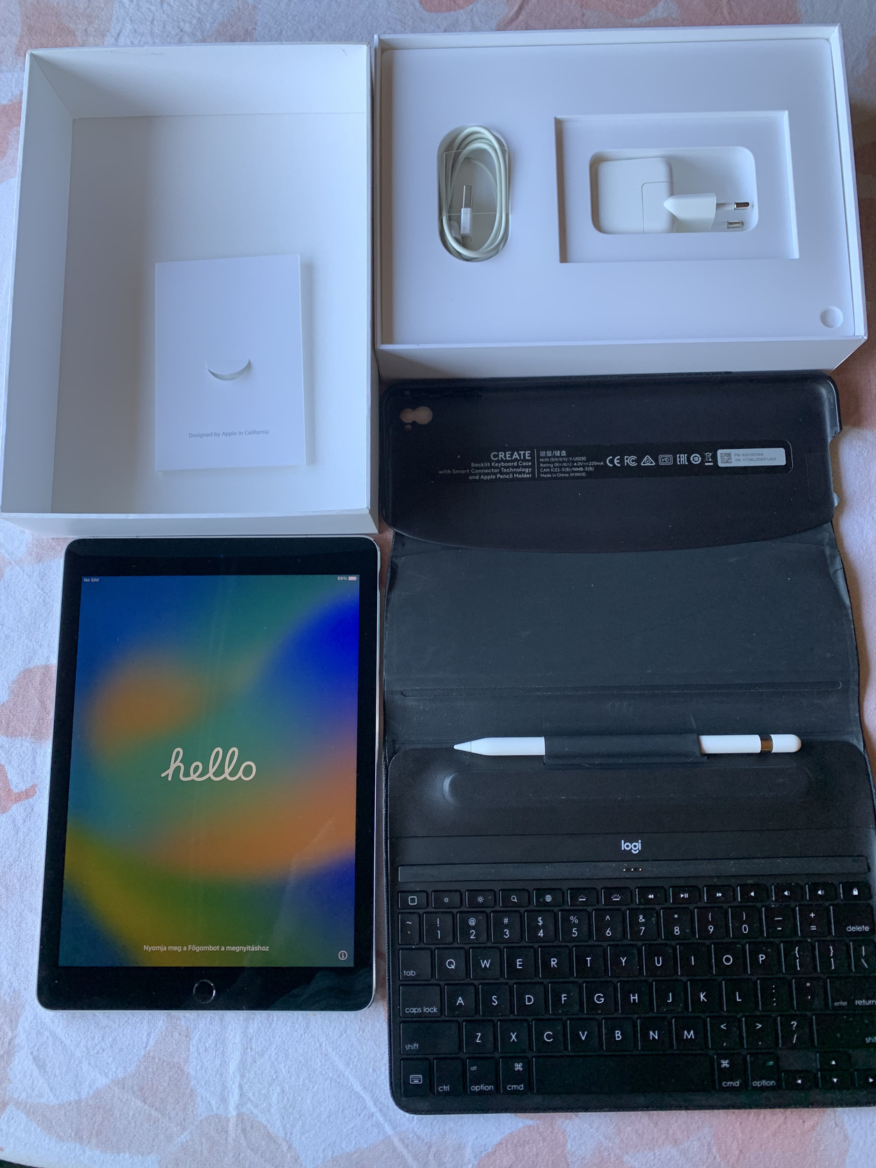 Eladó a képeken látható tablet, pencil és világítós billentyűzet együtt. A tablet mindene működik, szép az állapota, egyetlen pici sérülés fotózva. Saját dobozában eredeti töltővel. A pencil is rendben működik, a kupakján apró repedés, fotózva. Saját dobozában, de póthegy nélkül. A világítós angol billentyűzet mindene működik, oldalából pici darab letörött, szintén fotózva, de ez nem befolyásol semmit a tökéletes működésben.